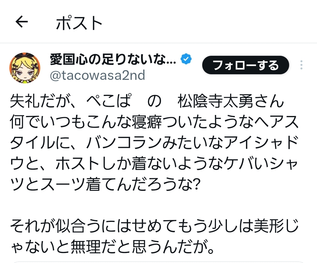 ぺこぱ松陰寺は落ちぶれてウヨ堕ちしたとか失礼なこというな。削除された記事が2件あります.見る