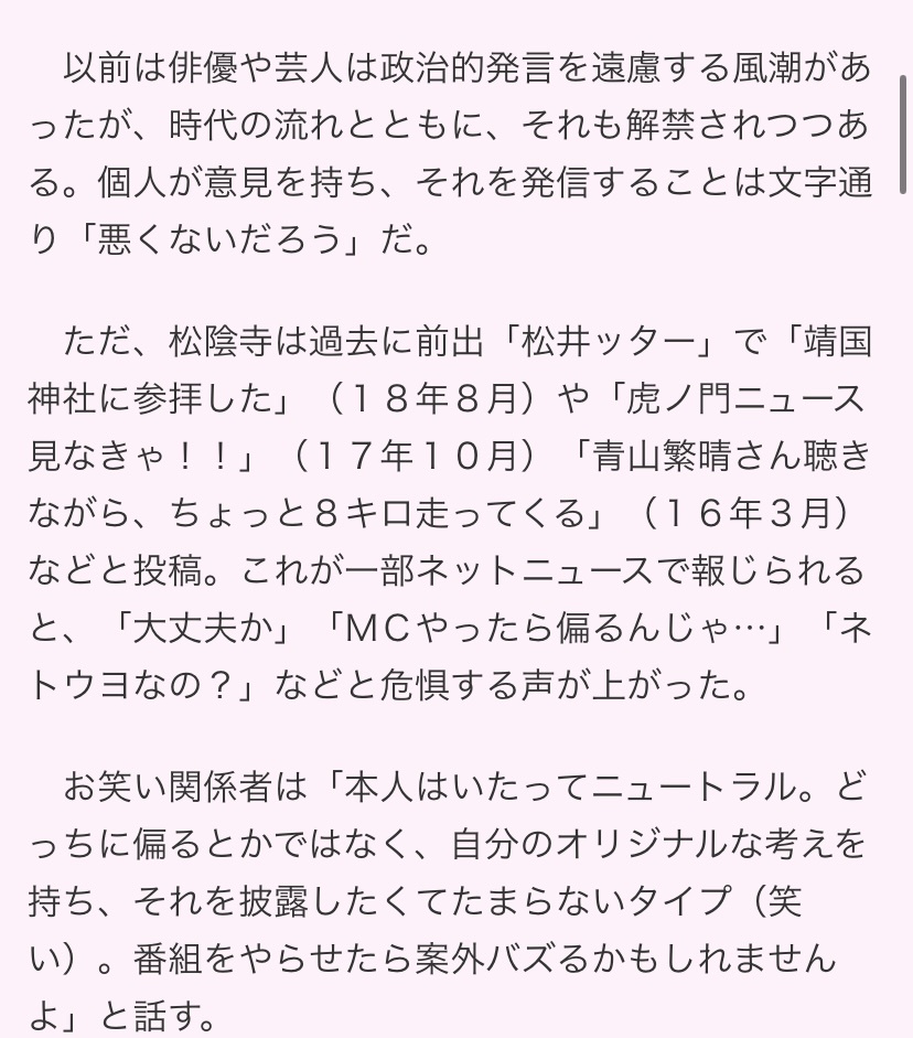 彼の短い絶頂期だった2020年には既に、良くて保守派、悪くてネトウヨって言われてましたから。