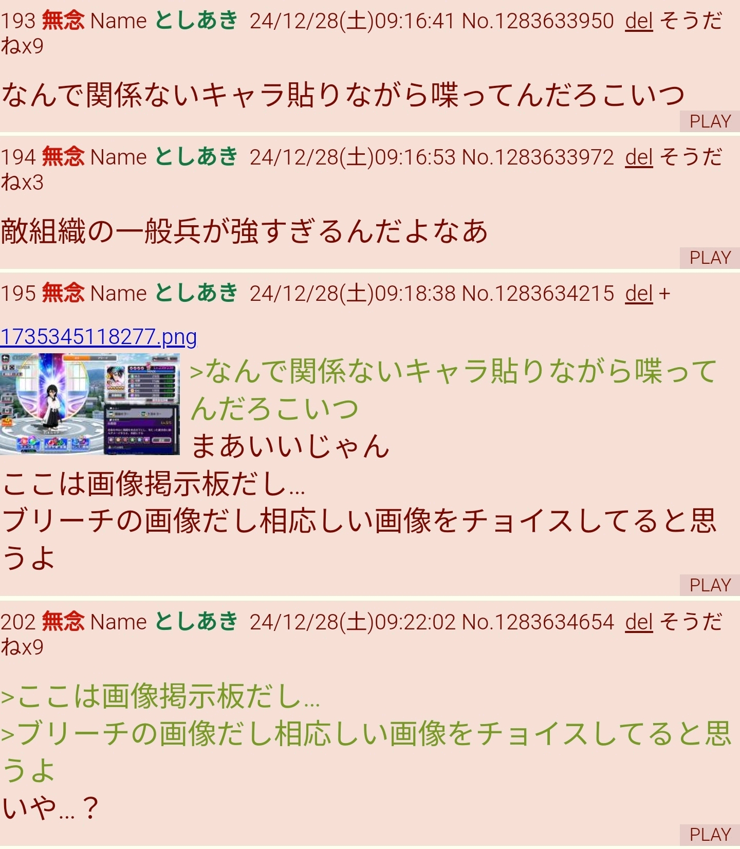 | … | 353無念Nameとしあき26/02/19(木)13:57:09No.1388458075+>コピペ荒らしとかこういう奴のスレに湧けばいいのに |