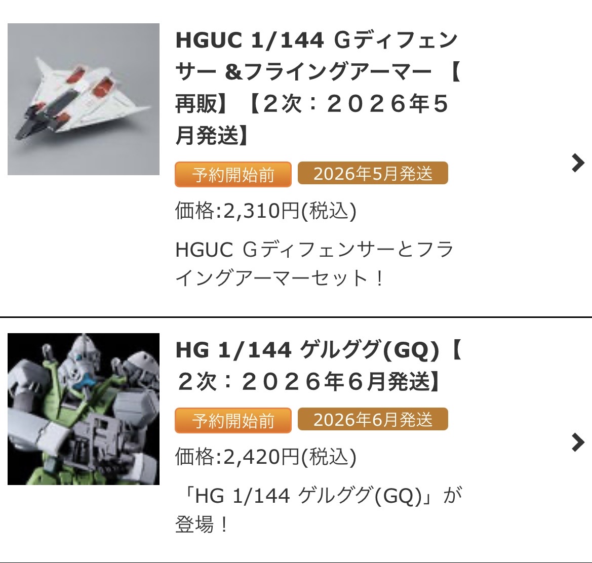 | … | 191無念Nameとしあき26/02/19(木)13:27:14No.1388453407+>>HGUCGアーマーもリストにあったが今から手に入れても単品だと困るんじゃないの |