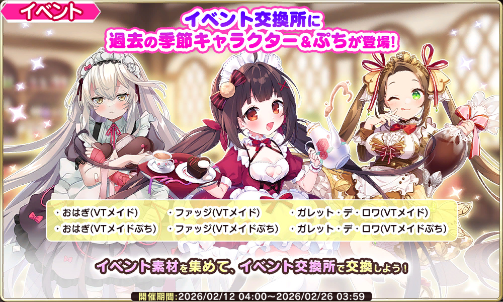 | … | 57無念Nameとしあき26/02/19(木)22:35:43No.1388566723+>だいぶ過ぎたけどまだバレンタインイベントしてるからセーフしゅが |