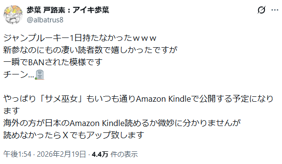 | … | 2無念Nameとしあき26/02/19(木)19:29:40No.1388515226+ 1771496980550.png-(32388 B) なお読めなかった読者のためにkindleで無料公開予定とのこと |