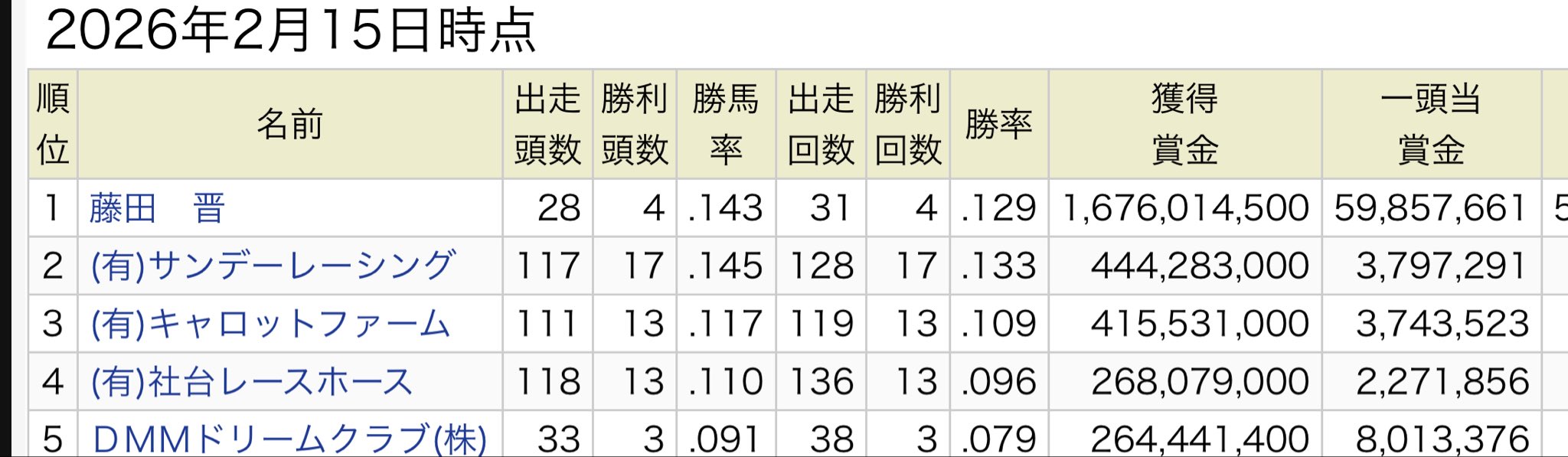 | … | 15無念Nameとしあき26/02/19(木)20:10:35No.1388525994そうだねx1 1771499435714.jpg-(161621 B) 夜馬主賞金ランキング |