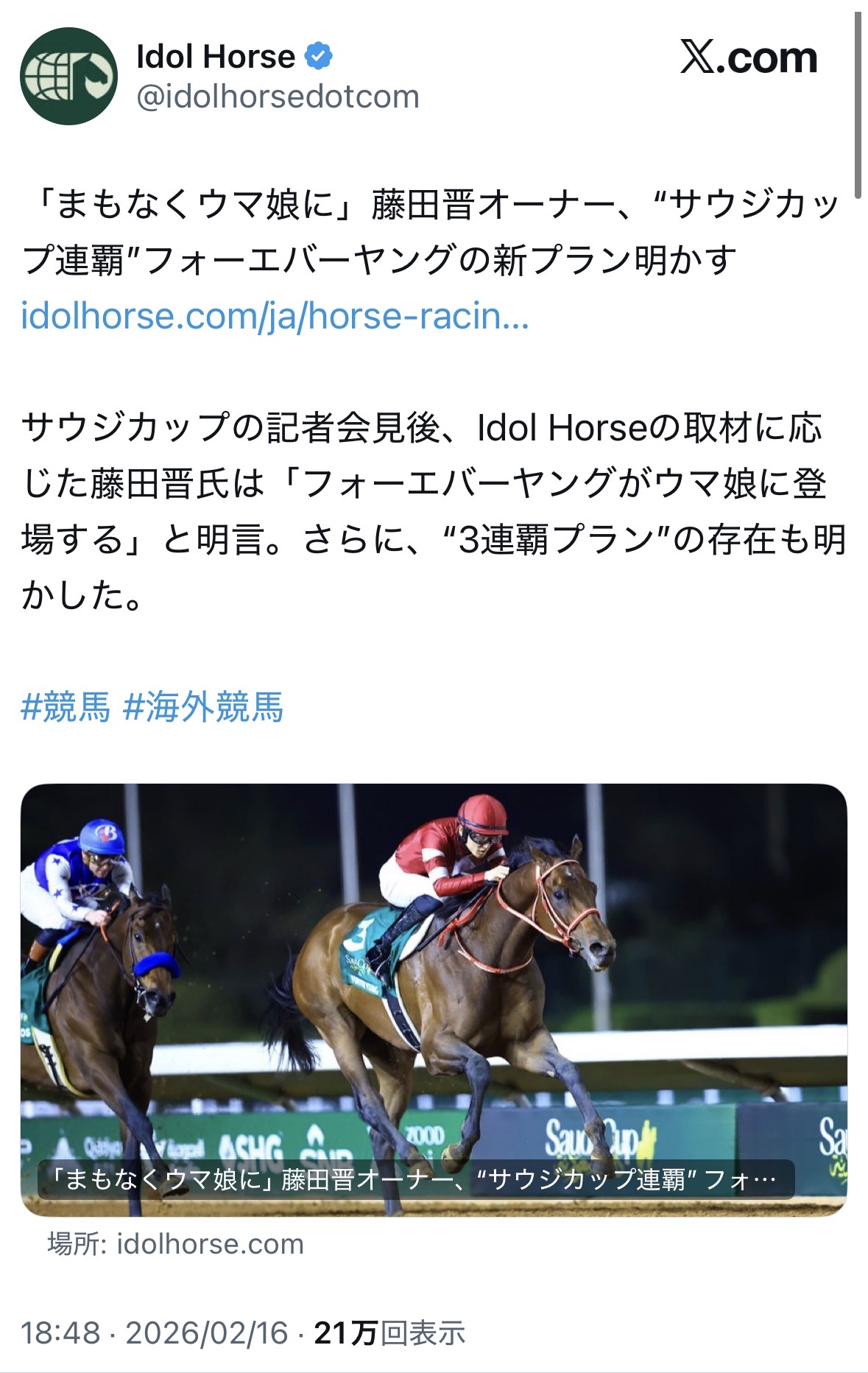 | … | 99無念Nameとしあき26/02/19(木)21:12:13No.1388543961そうだねx4 1771503133864.jpg-(350004 B) >馬主さんはフォーエバーヤングについてお漏らししたことは |