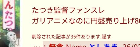 たつき監督ファンスレ削除された記事が35件あります.見る