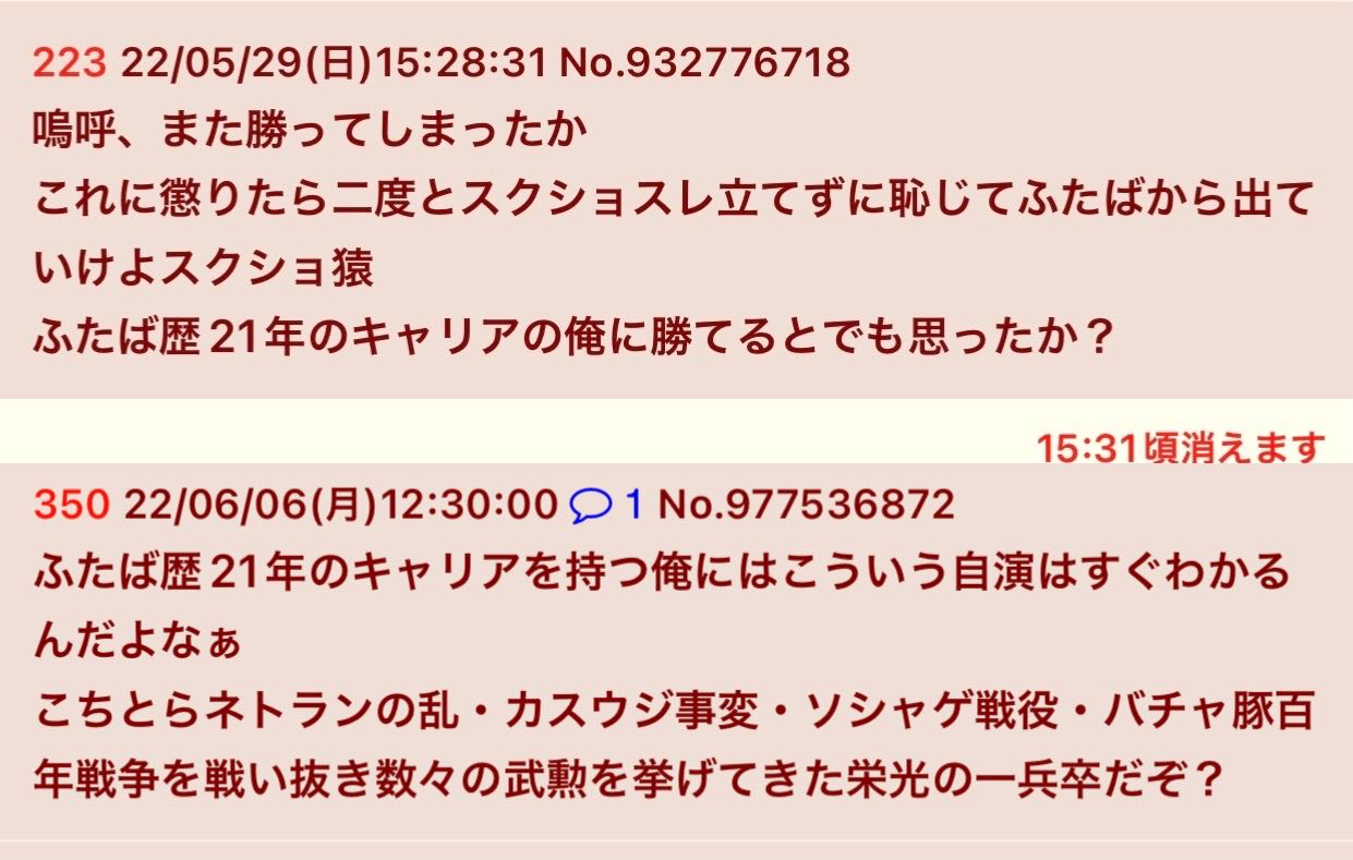| … | 169無念Nameとしあき26/02/20(金)01:08:40No.1388597909+>>人が居なくなったころに5分以内に書き込みなかったら俺の勝ちとかやりだす豚だしな |