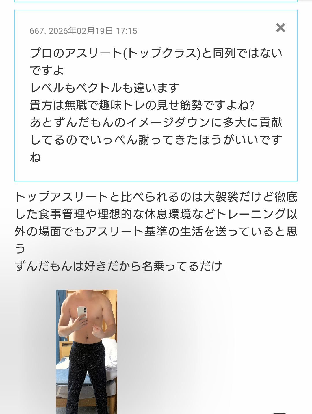 | … | 71無念Nameとしあき26/02/20(金)10:15:25No.1388634567そうだねx1>リモートで筋トレのコーチング出来るかな |