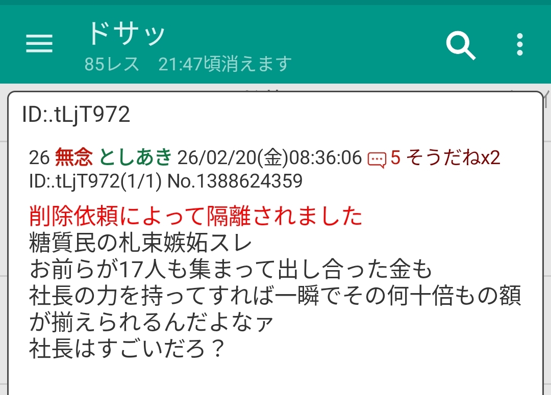 | … | 71無念Nameとしあき26/02/20(金)10:50:49No.1388638784+>>みじめなお金持ちごっこがまた始まった |