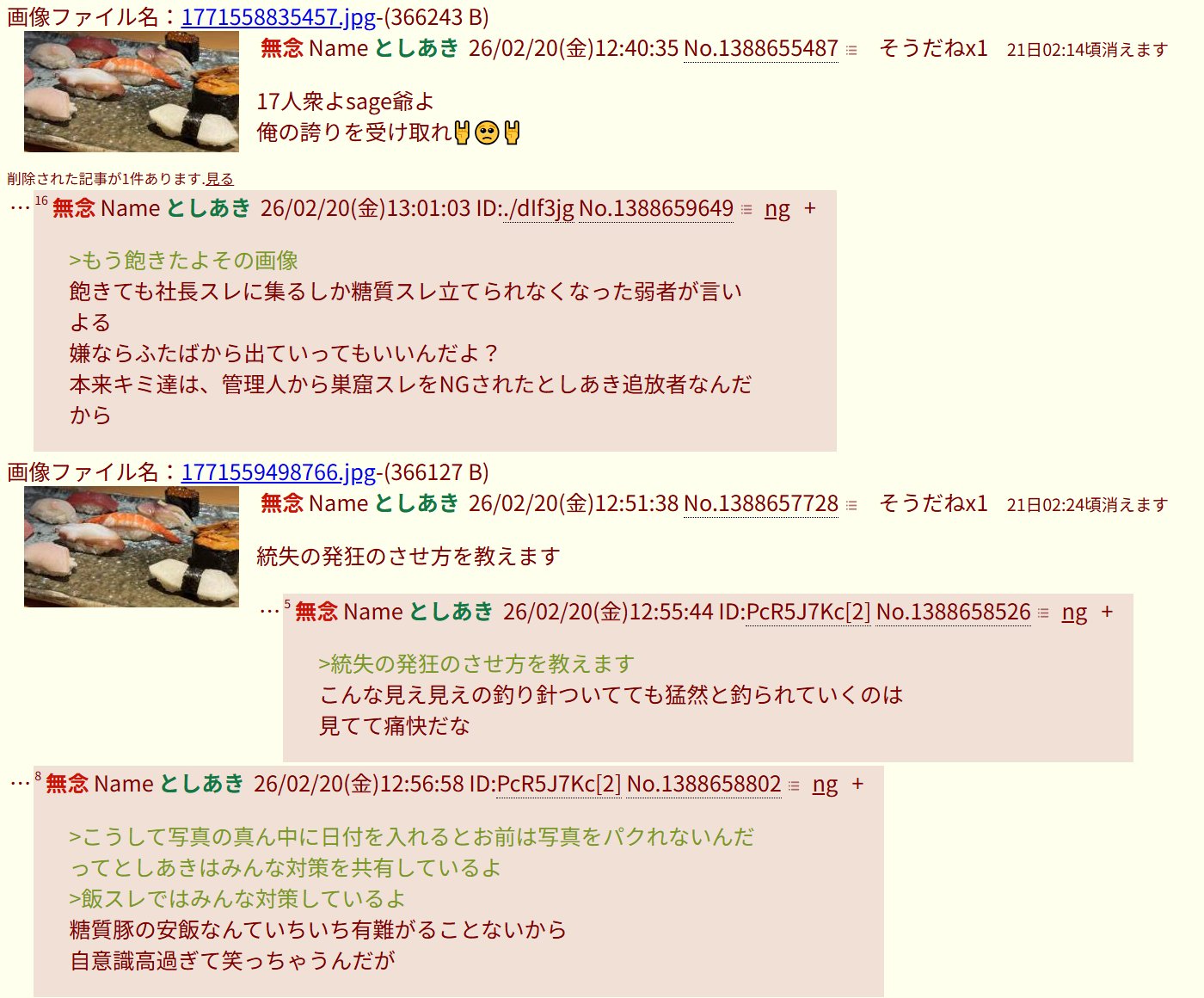 | … | 465無念Nameとしあき26/02/20(金)16:38:33No.1388692177そうだねx1>寿司やTAI |