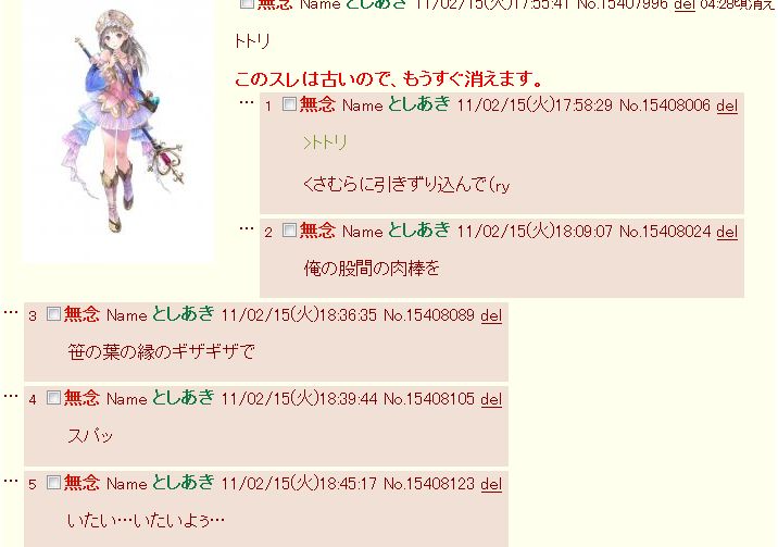 トトリのアトリエスレ削除された記事が1件あります.見る