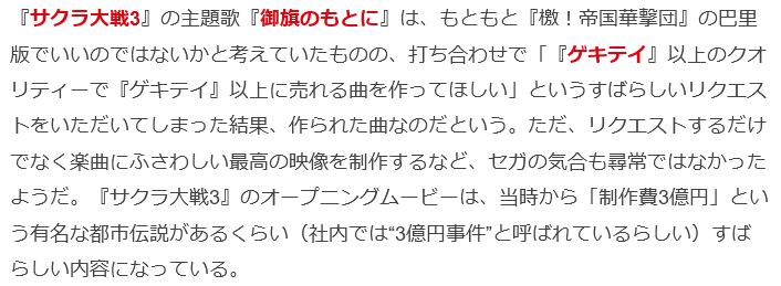 | … | 240無念Nameとしあき26/02/21(土)00:50:43No.1388810562+3の話じゃないが2000年前後くらいにサクラ大戦のムービーパートだけを収録したディスク(DVD?)売ってたなぁ |