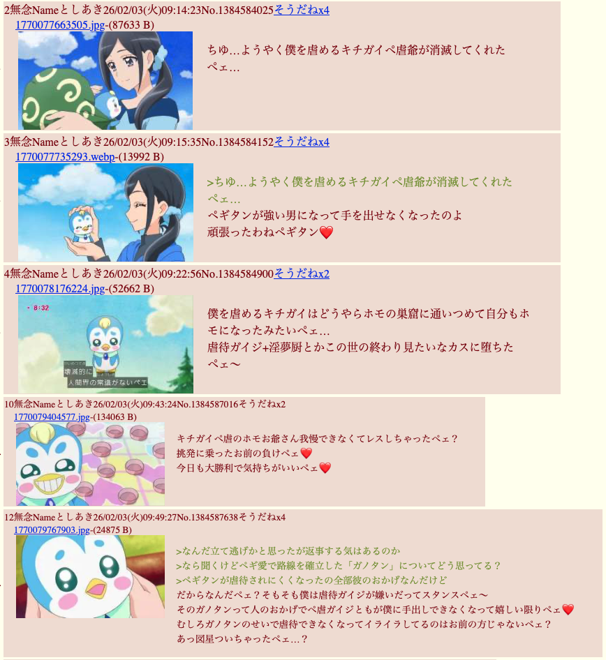 | … | 403無念Nameとしあき26/02/21(土)01:45:09No.1388818491そうだねx3 1771605909306.jpg-(1094222 B) >原作ペギタンもよく遊んでいたもんな |