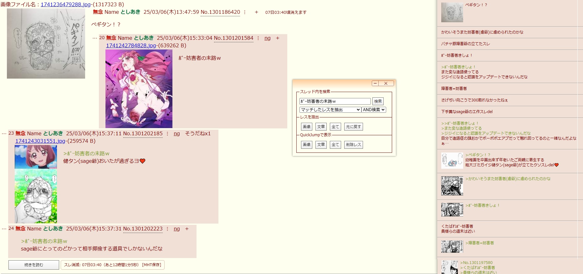 | … | 47無念Nameとしあき26/02/20(金)23:50:16No.1388798723そうだねx2>人のスレ荒らしといて何言ってんだゴミ |