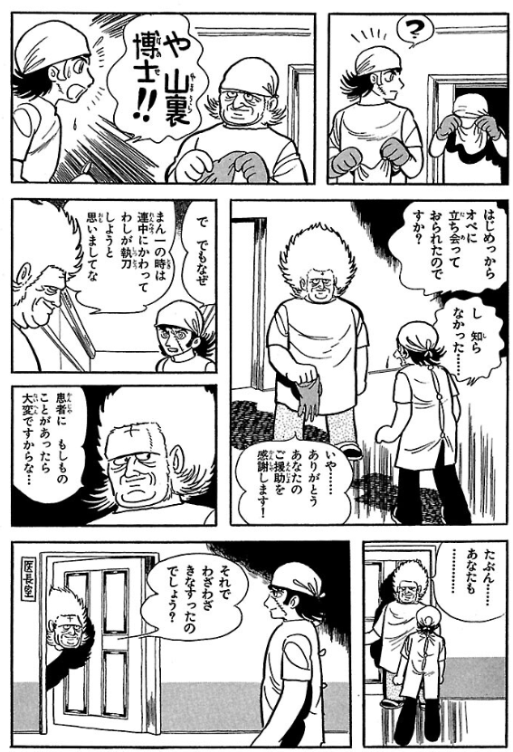 | … | 45無念Nameとしあき26/02/21(土)13:38:15No.1388897674そうだねx3若い医者達が指導医を無視してオペに臨んで失敗しそうなところをブラックジャックが助けてやって術後に助手に紛れて見守ってた指導医にお礼言われる話好き |