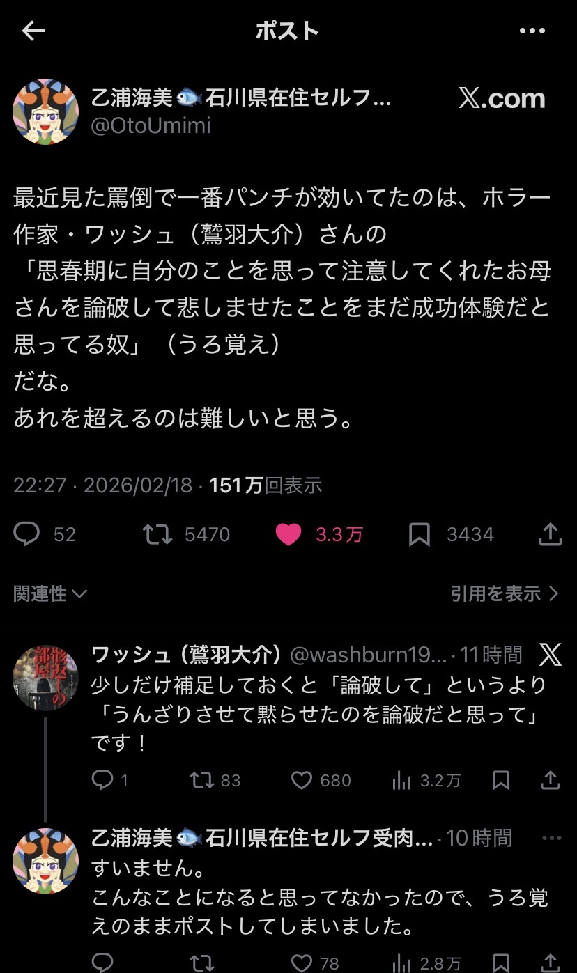 | … | 55無念Nameとしあき26/02/21(土)14:41:17No.1388910640+>No.1388907853 |