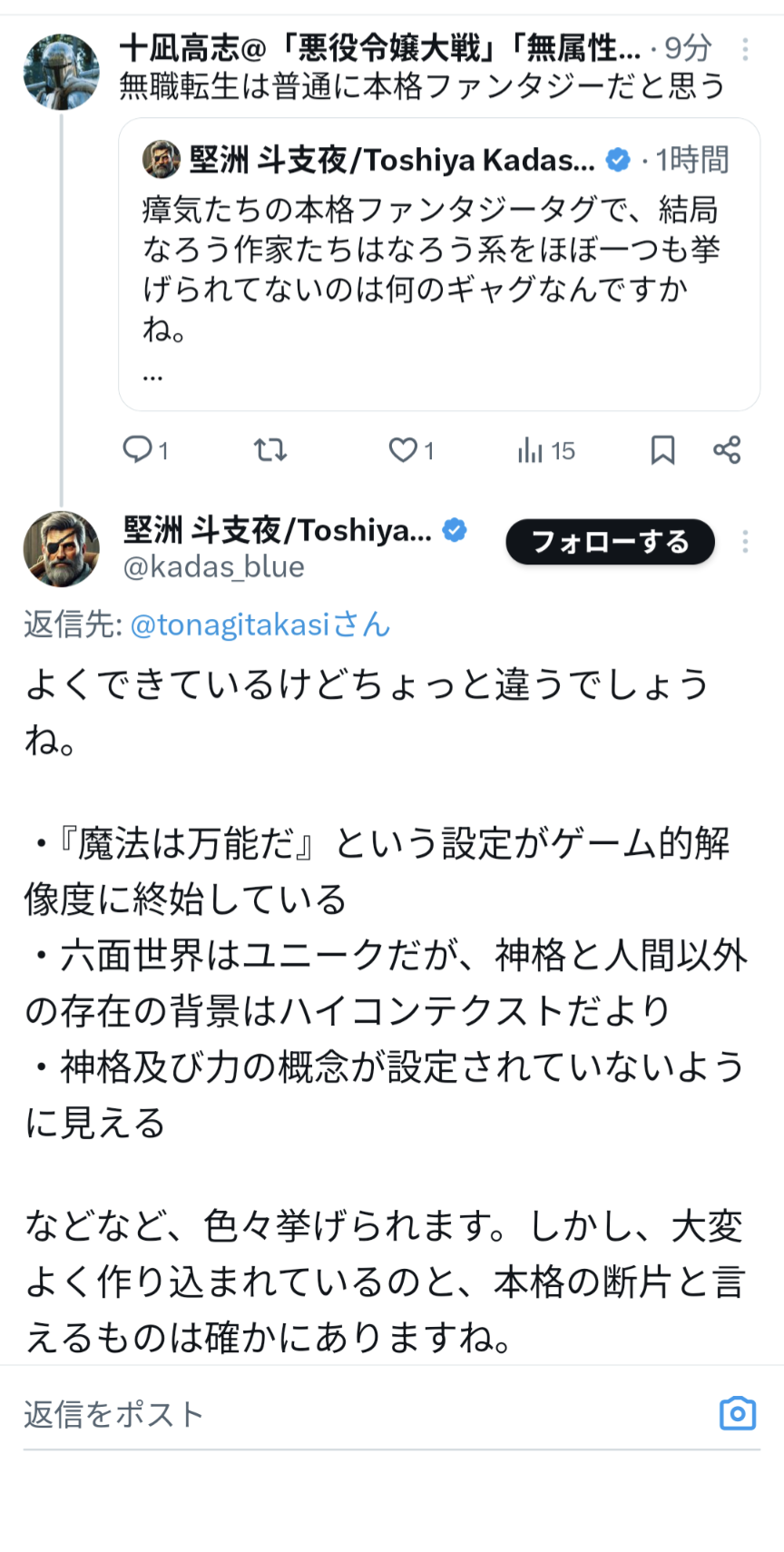 | … | 109無念Nameとしあき26/02/21(土)16:09:35No.1388928607+むしろ無職転生って指輪物語あたりを参考にしたガチガチに本格ファンタジーの下地ある作品だと思うけど… |