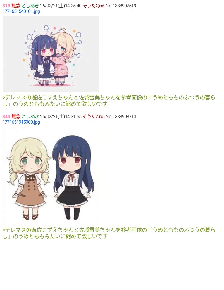 | … | 57無念Nameとしあき26/02/21(土)15:28:17No.1388920194+今朝から2つくらいしかリクお答えできてないですが |