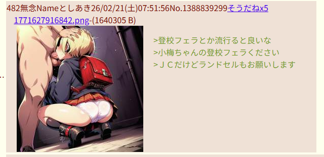 | … | 311無念Nameとしあき26/02/21(土)16:28:38No.1388932303+性の知識に乏しいみいちゃんが騙されてレイプされている画像お願いします |
