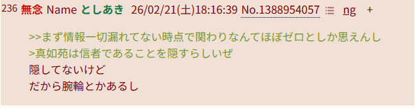 | … | 795無念Nameとしあき26/02/21(土)20:10:48No.1388984055+>>真如苑繋がりを主張するならチーム未来並みに流行ってないのはおかしい |