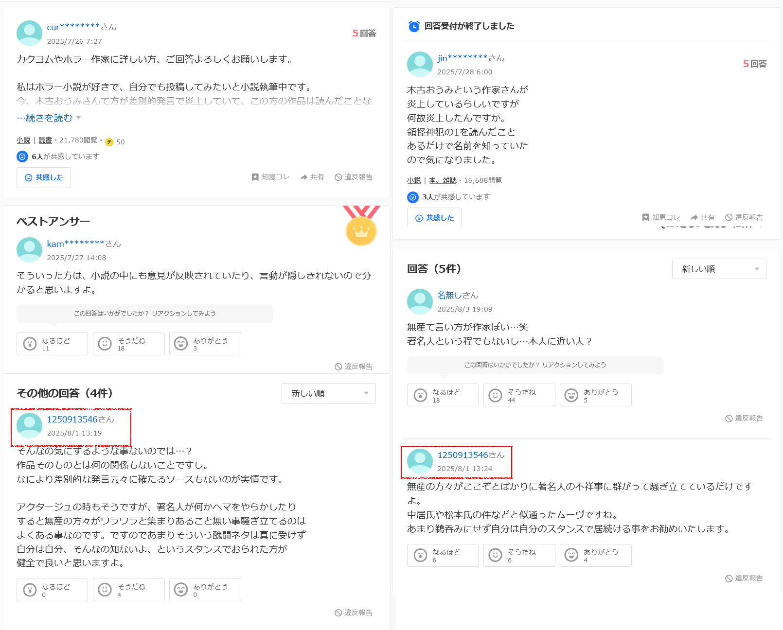木古おうみ先生スレ夕方上限1000レスに達しました
