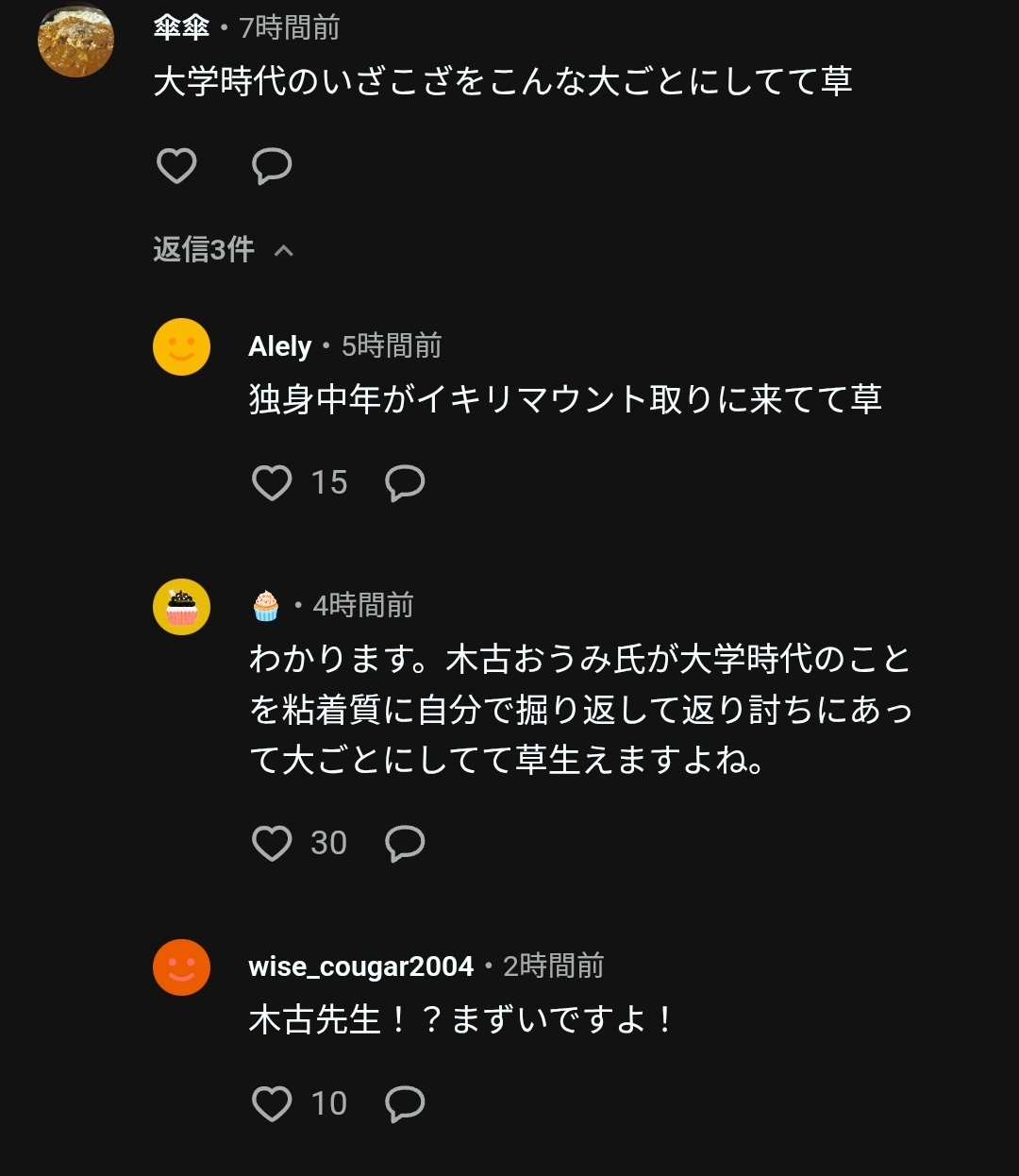 | … | 82無念Nameとしあき26/02/21(土)18:14:39No.1388953667+>大学時代のサークル内の力関係に戻らせたいのではないかな |