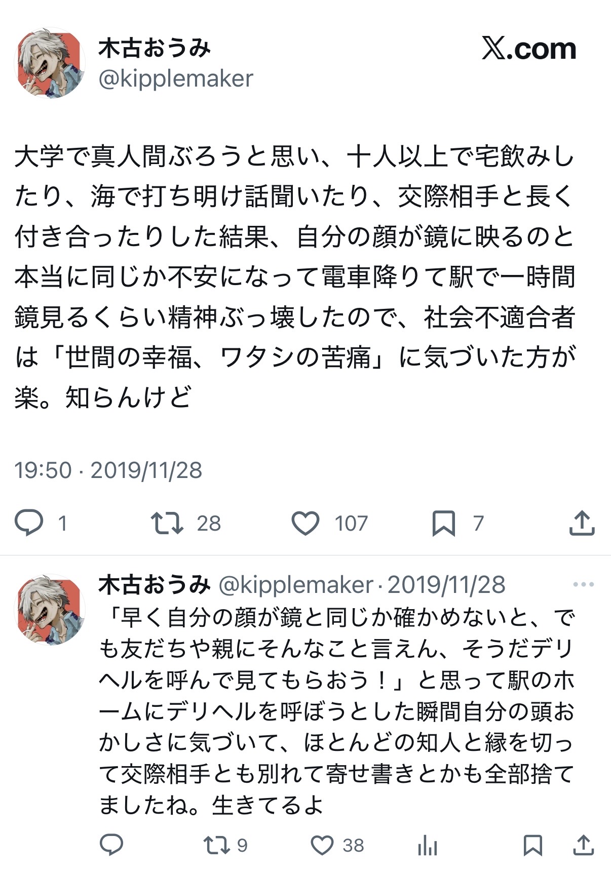 | … | 8無念Nameとしあき26/02/21(土)17:56:44No.1388949824そうだねx6 1771664204890.jpg-(66187 B) 文藝部時代のリア垢 |