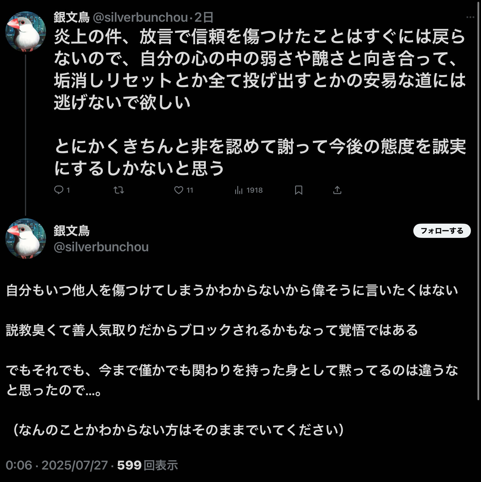 | … | 93無念Nameとしあき26/02/21(土)18:16:53No.1388954102そうだねx16 1771665413640.png-(27530 B) この人本当に「あっちの愚鈍と違って自分は気を付けている」思考なんだな |