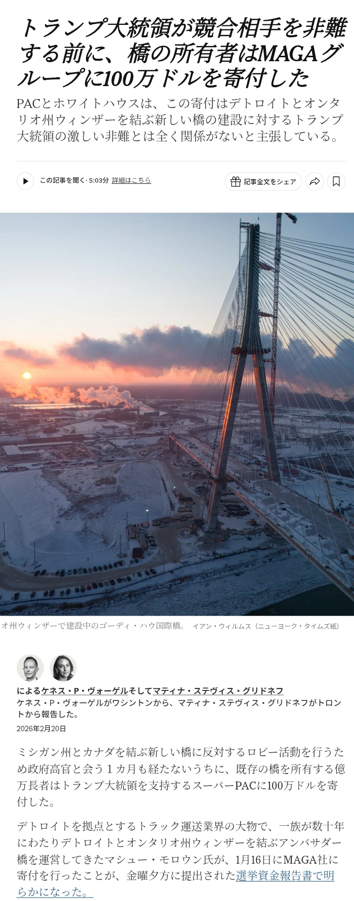 | … | 904無念Nameとしあき26/02/21(土)20:27:50No.1388989180そうだねx1倒産したときにプーチン周りのオリガルヒ達がトランプの不動産を相場の数倍で買い取ってくれたのは |