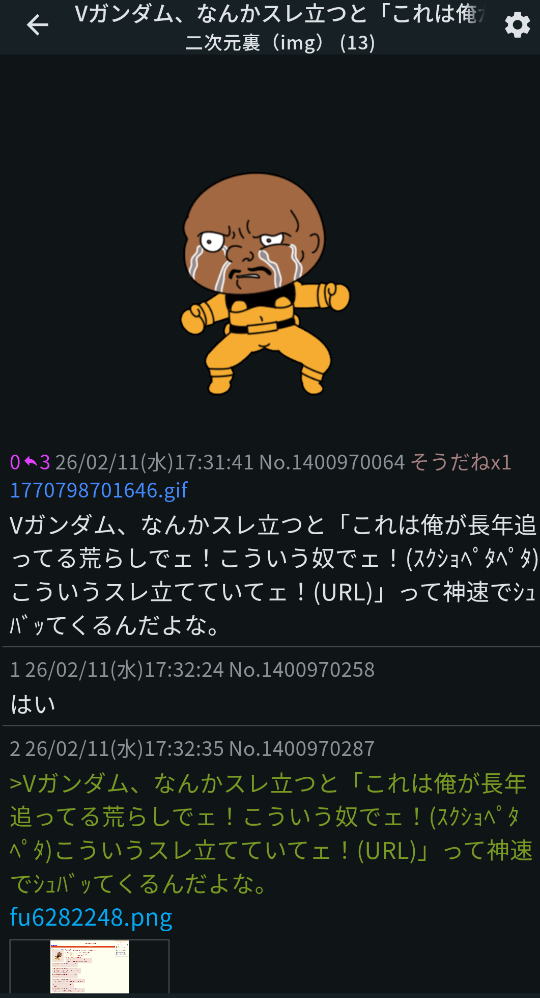 | … | 19無念Nameとしあき26/02/21(土)20:14:05No.1388985008+imgで自演バレ |