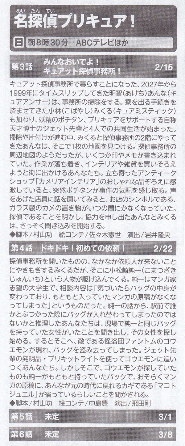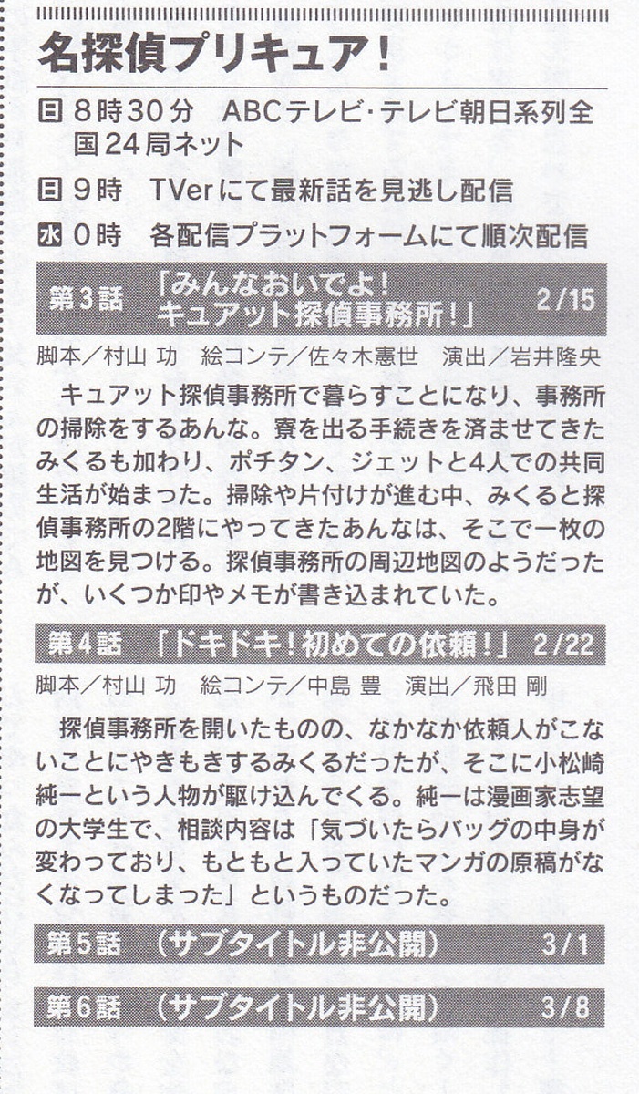 | … | 55無念Nameとしあき26/02/21(土)18:53:55No.1388962457+『名探偵プリキュア!』(めいたんていプリキュア!、Star Detective Precure!)は、2026年2月1日から朝日放送テレビの制作により、テレビ朝日系列で毎週日曜8時30分から9時に放送されている、東映アニメーション制作のテレビアニメ。 |