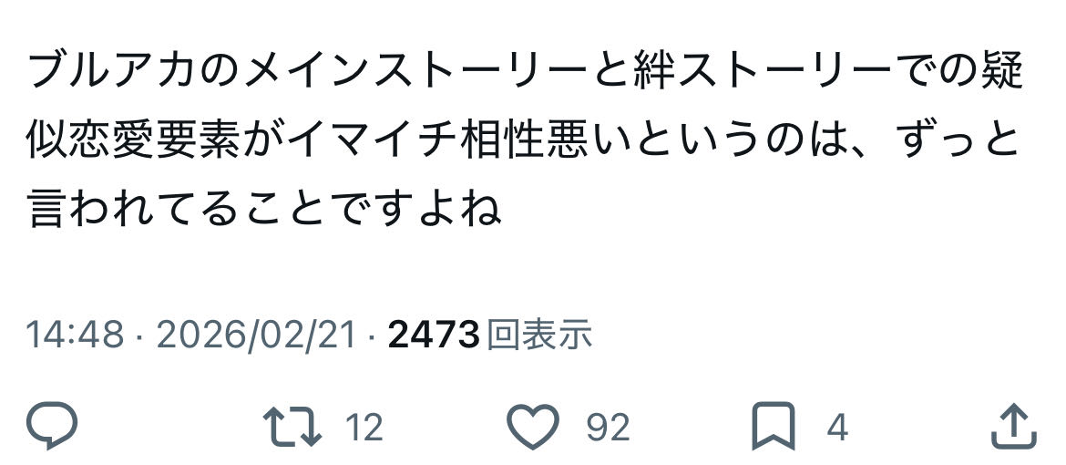 | … | 384無念Nameとしあき26/02/22(日)01:20:29No.1389066823そうだねx2>ブルアカの開発スタッフは普通なら創作の作法として避ける筈の同一用語の多重用法を平気で用いるからな |