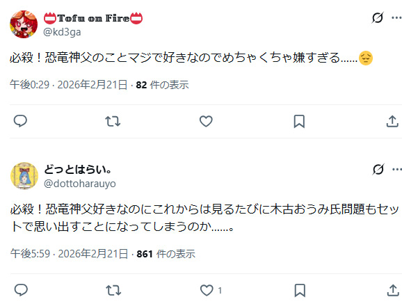| … | 47無念Nameとしあき26/02/21(土)22:51:57No.1389032388+こんだけ騒動広がったらちゃんと流れを読まずにいっちょ噛みするやつも出てくるわな |