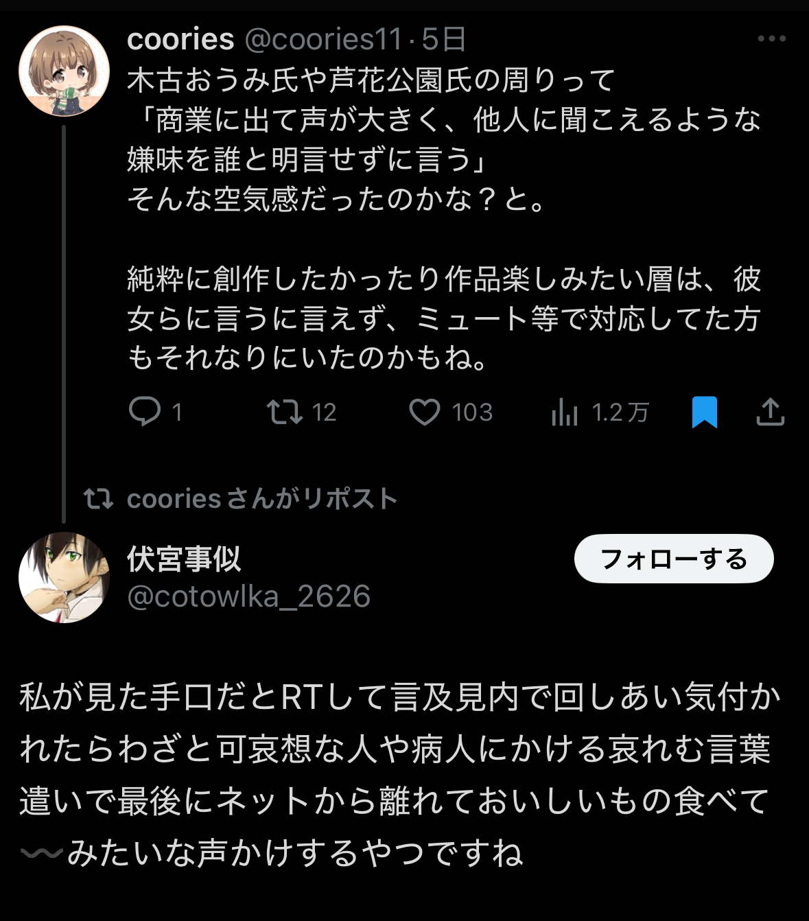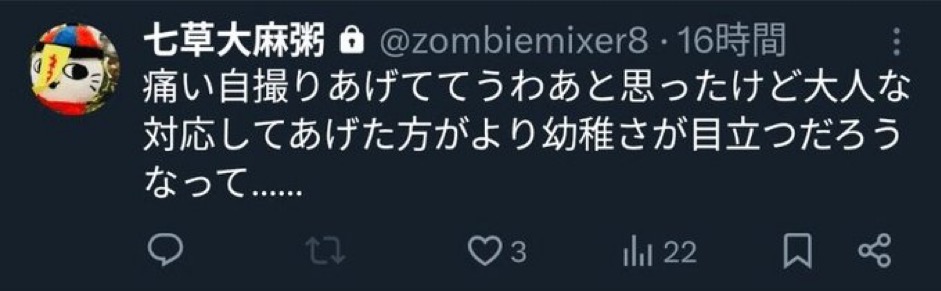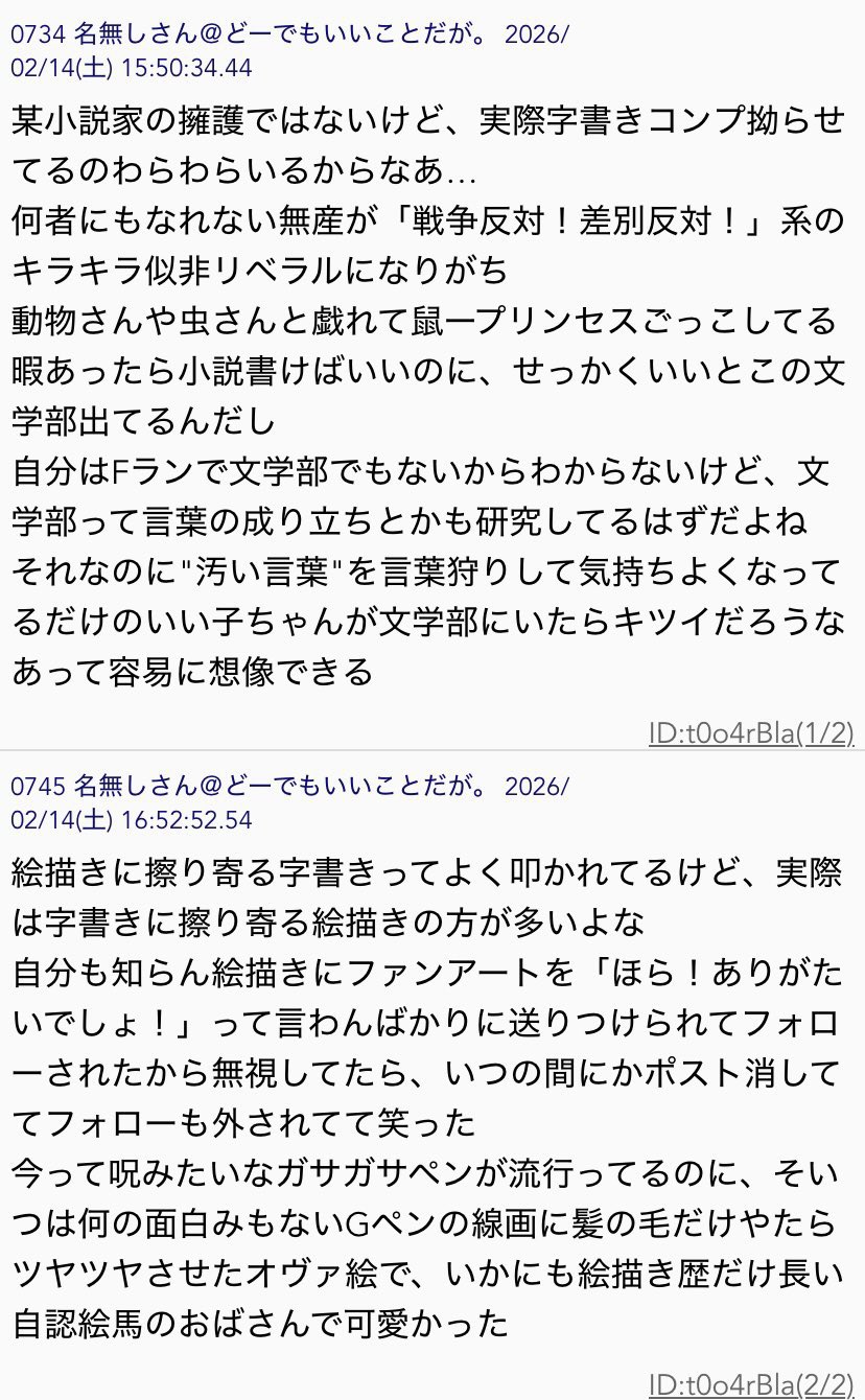 | … | 51無念Nameとしあき26/02/21(土)22:52:27No.1389032530そうだねx1 1771681947858.jpg-(177054 B) >凡百のイキリ腐女子にありがちなうちの子なりきり垢 |