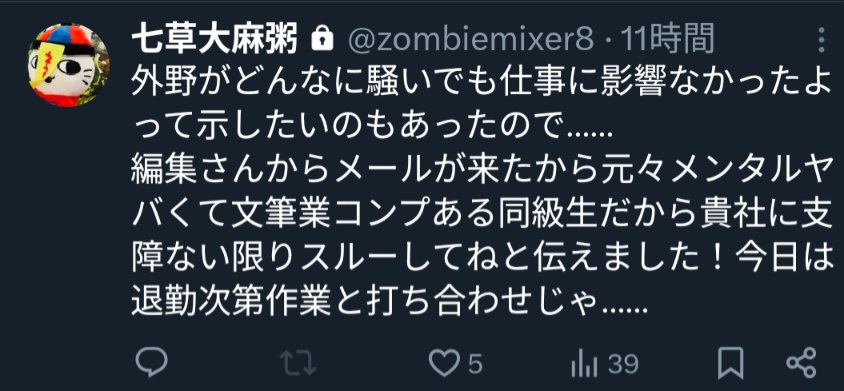 | … | 38無念Nameとしあき26/02/21(土)22:49:42No.1389031669そうだねx1>>なんでこんだけあって商業垢であの発言するんですかね |