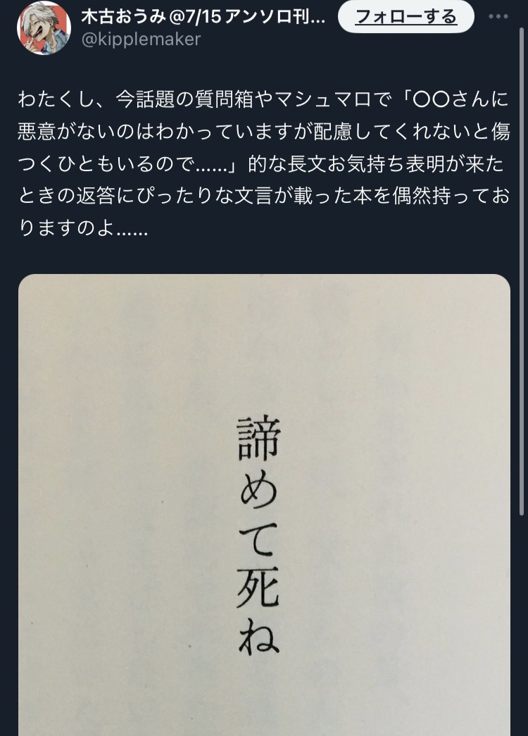 | … | 975無念Nameとしあき26/02/22(日)01:07:45No.1389064771+>>おうみスレちょこちょこ覗いてるけど見るたびに初見のカスツイートが貼ってあって怖い |