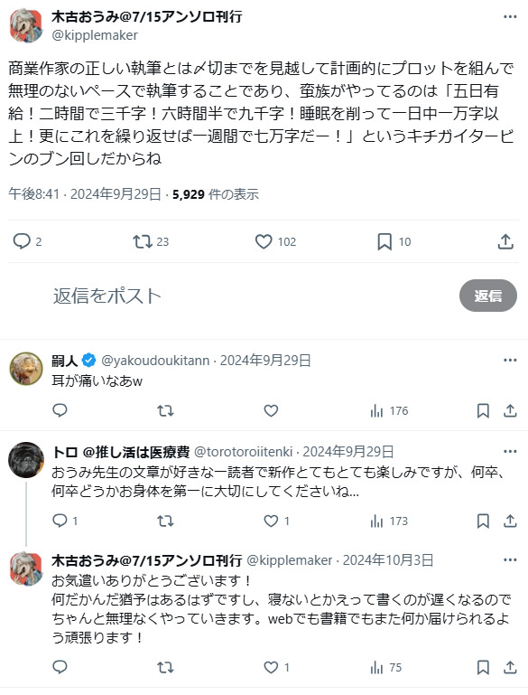 木古おうみ先生スレ夜上限1000レスに達しました