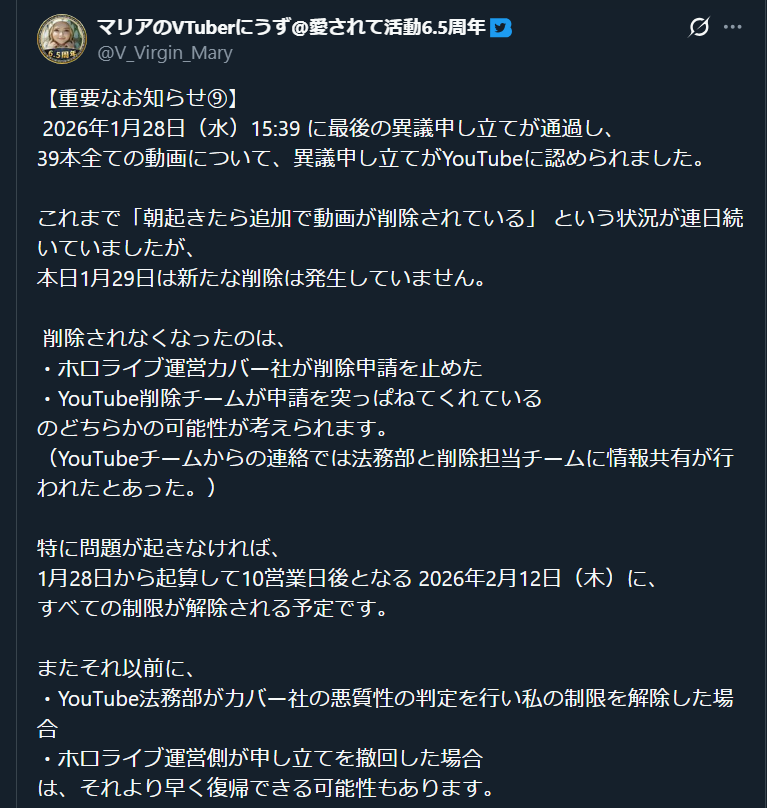 | … | 69無念Nameとしあき26/02/22(日)01:02:11No.1389063825そうだねx5>動画戻ってきた時のあの浮かれ様見るに多分全部つべで対処してくれるのだと勘違いしてたんだと思う |