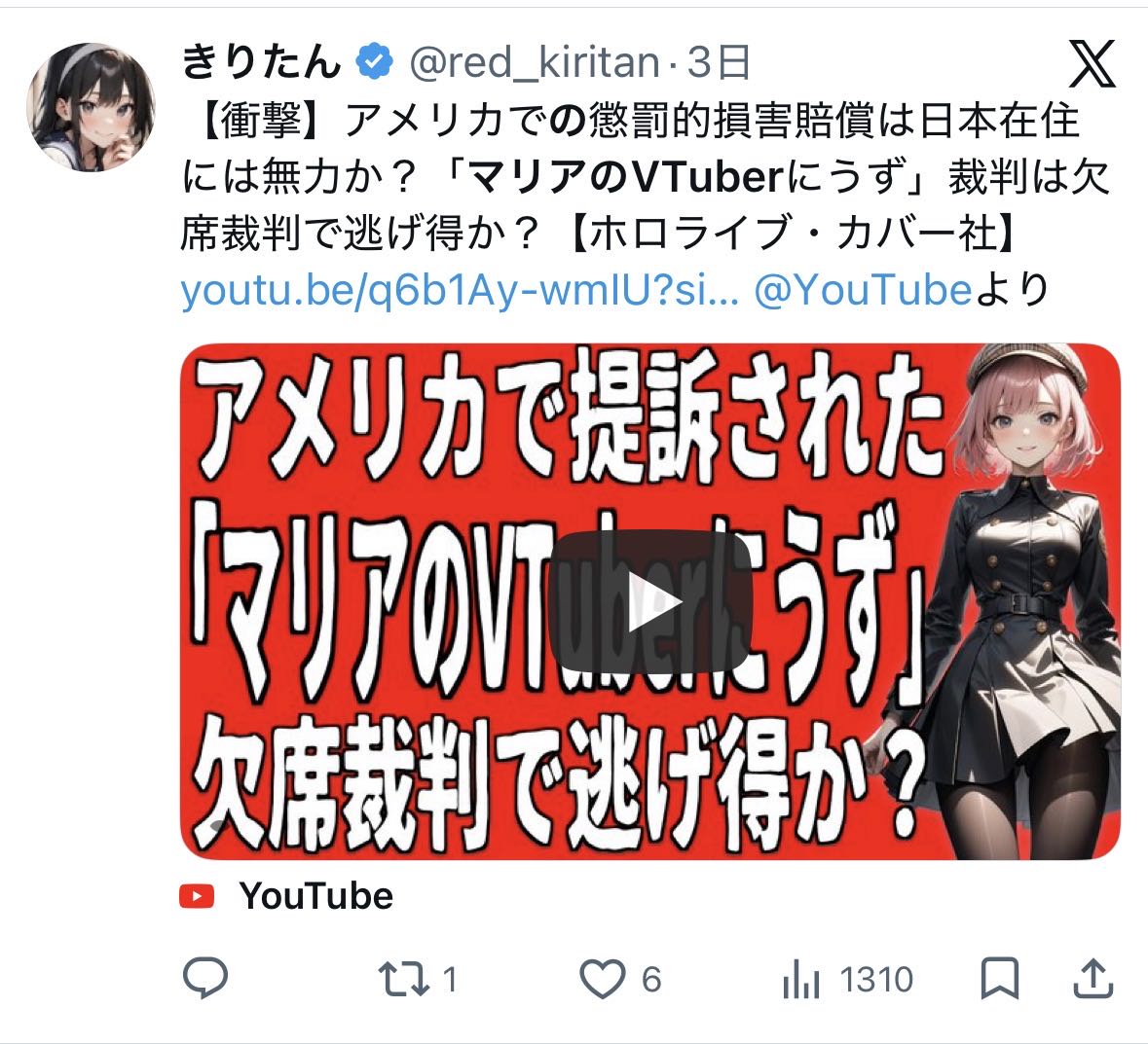 | … | 36無念Nameとしあき26/02/22(日)00:37:49No.1389058731そうだねx1>ニコ動だけで活動してれば日本の裁判で済んだのに… |