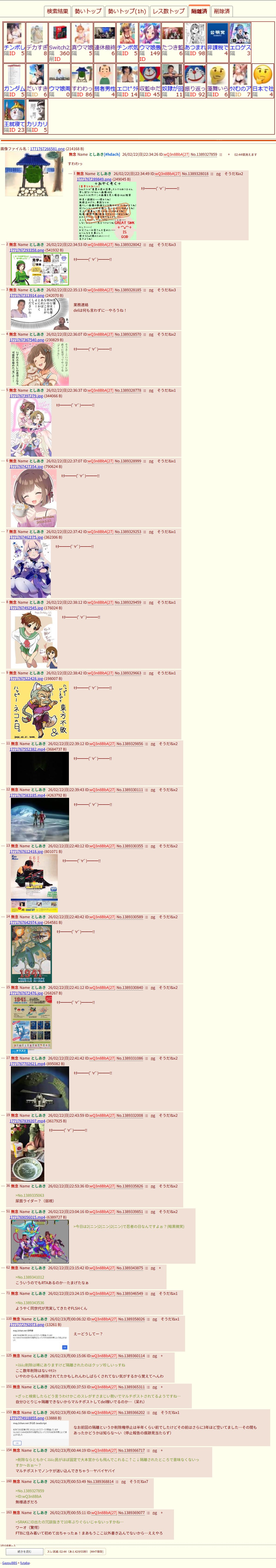 | … | 162無念Nameとしあき26/02/24(火)00:36:01No.1389632773そうだねx3 1771860961743.webm-(116425 B) >ID:qUsxGSM. |