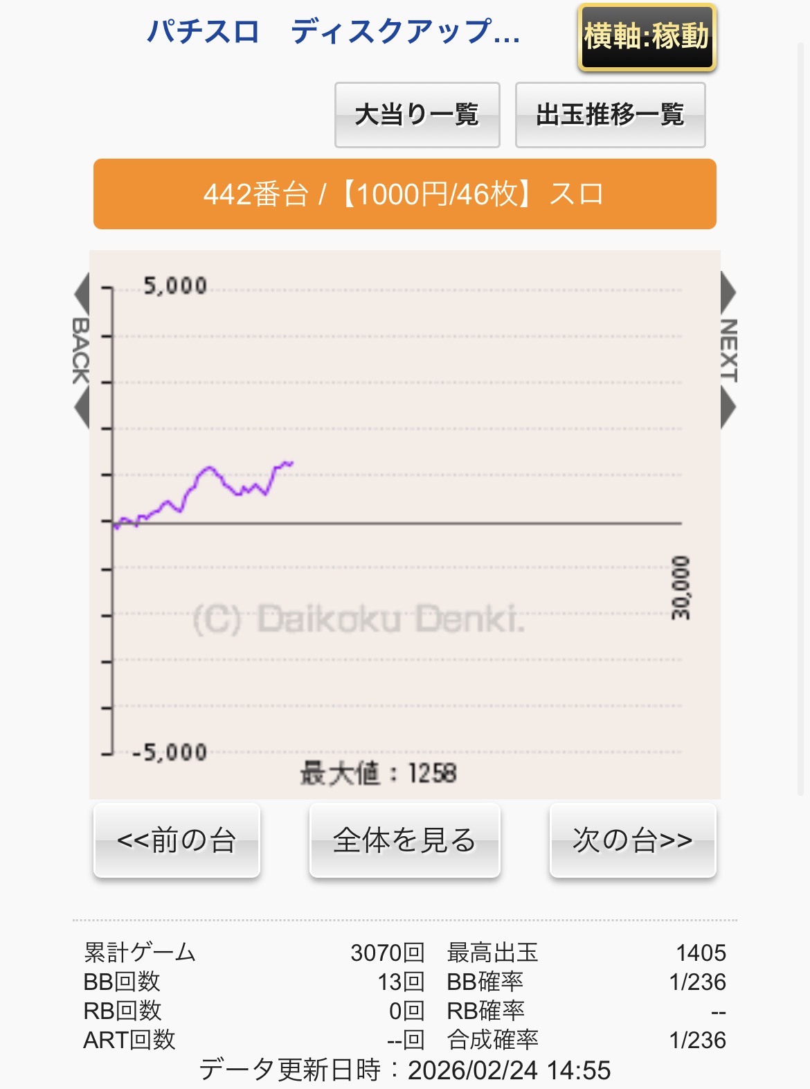 | … | 20無念Nameとしあき26/02/24(火)12:15:54No.1389689625+朝イチ秘宝伝に着席するもグラフを見ると |