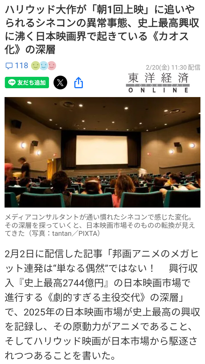 | … | 38無念Nameとしあき26/02/24(火)13:19:07No.1389700874+人は知らないものよりも知ってる馴染みのあるものを選びがちだから面白かったとしても洋画が売れないのは理解できる |