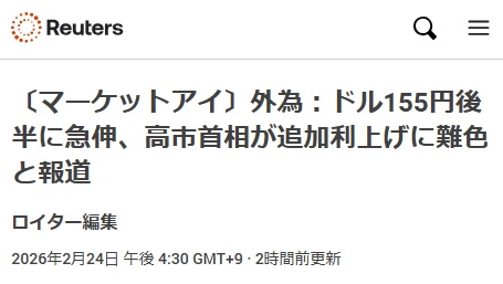 | … | 37無念Nameとしあき26/02/24(火)18:38:41No.1389750671+3月の利上げは後退したんで |