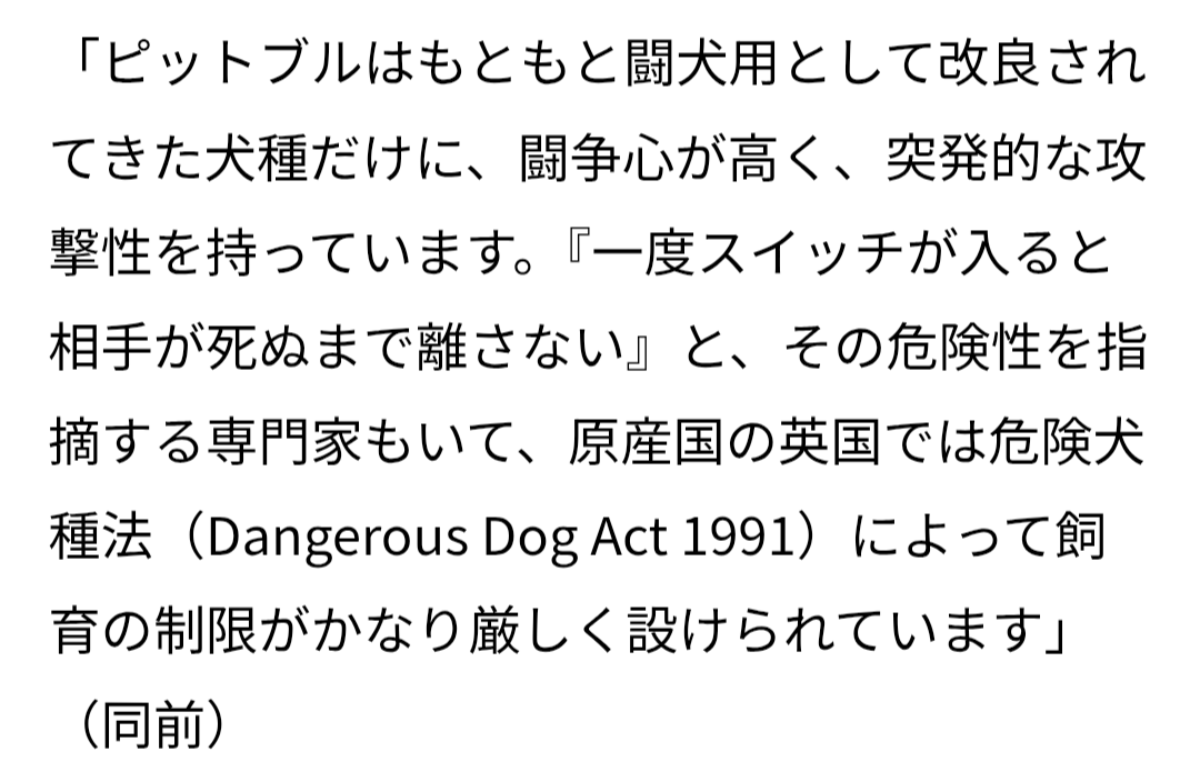| … | 110無念Nameとしあき26/02/25(水)18:29:19No.1389970503そうだねx1ピットブルが狂暴っていうのはイメージだけだろって思って調べたら本当にデータ上でも狂暴っていう |