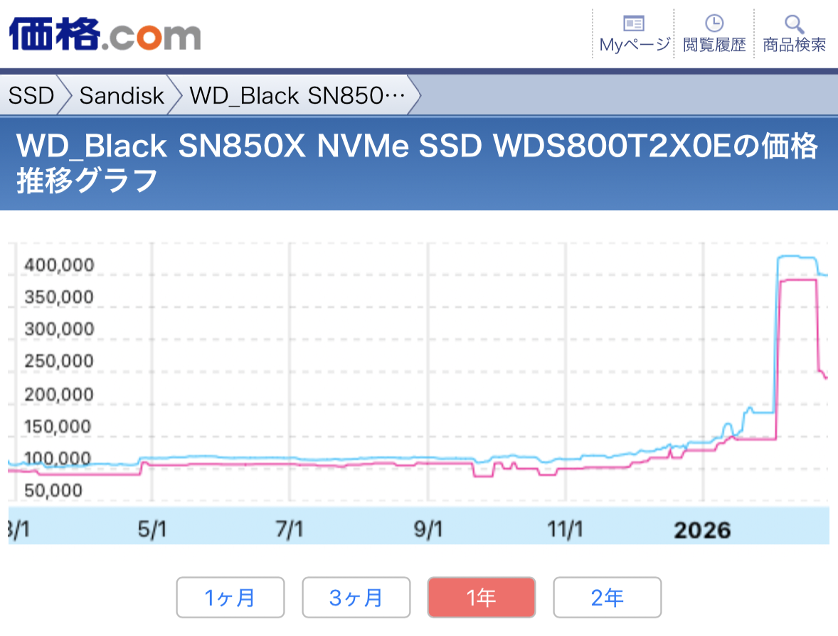 | … | 48無念Nameとしあき26/02/25(水)17:31:58No.1389959203そうだねx1>たった1つのSSDの価格下がっただけで市場の傾向読み取った気になってる奴って |