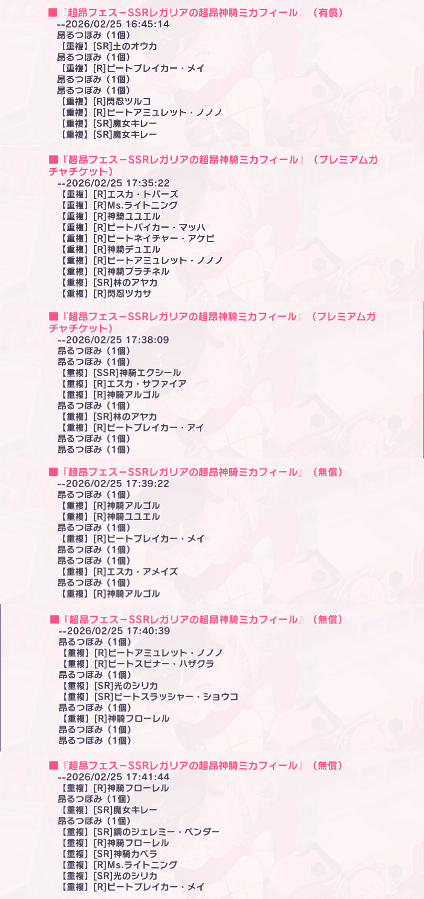 | … | 7無念Nameとしあき26/02/25(水)17:23:47No.1389957885そうだねx2うーんすり抜け0で本命のミカフィールが引けてしまった |