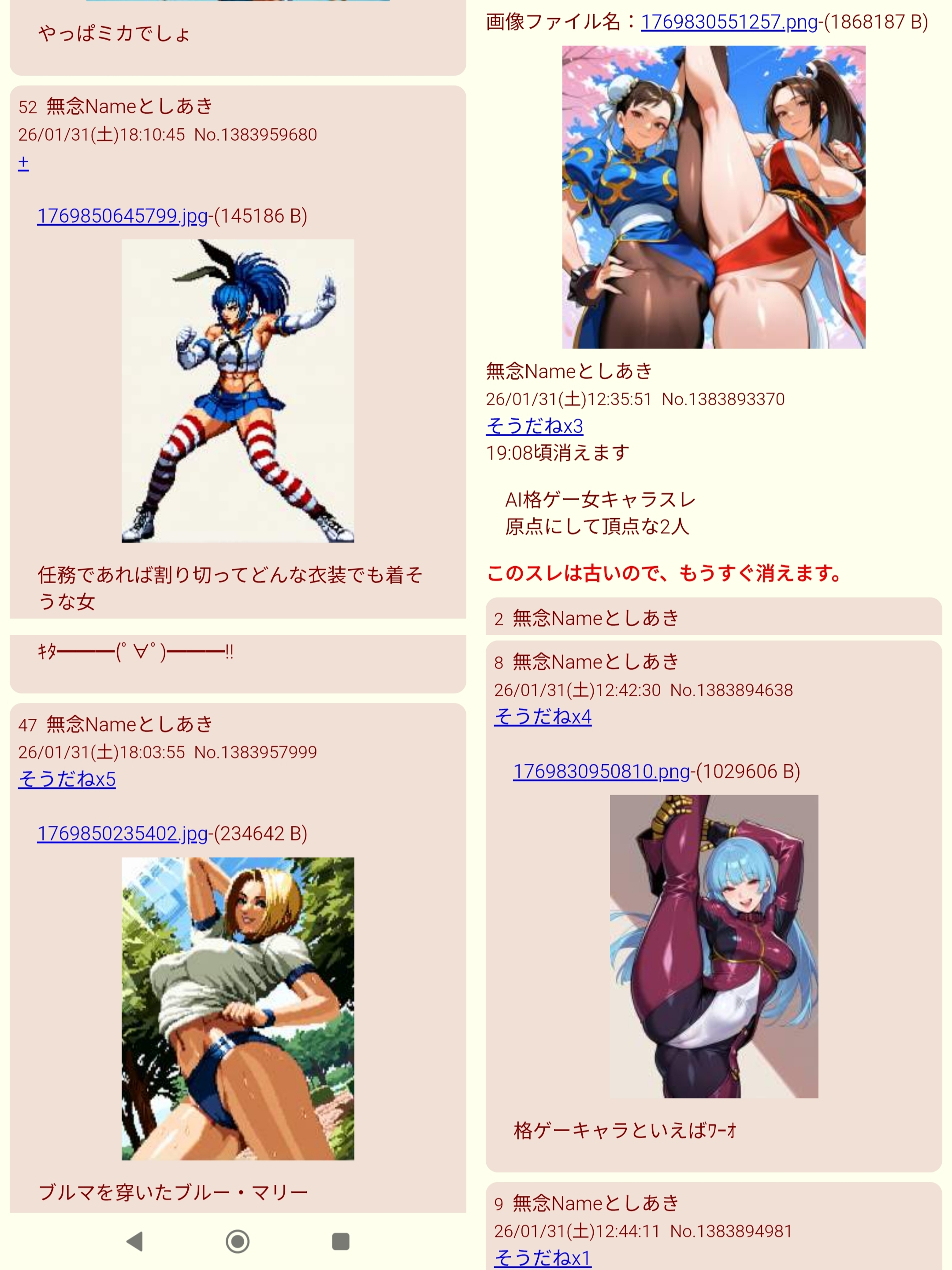 | … | 15無念Nameとしあき26/02/26(木)02:00:53No.1390074003+ 1772038853723.png-(7956645 B) その前のAI格ゲー女キャラエロスレではマイナー格ゲー女キャラ祭りとなっていたけどもちろんスレ画が挙がるはずはなく |