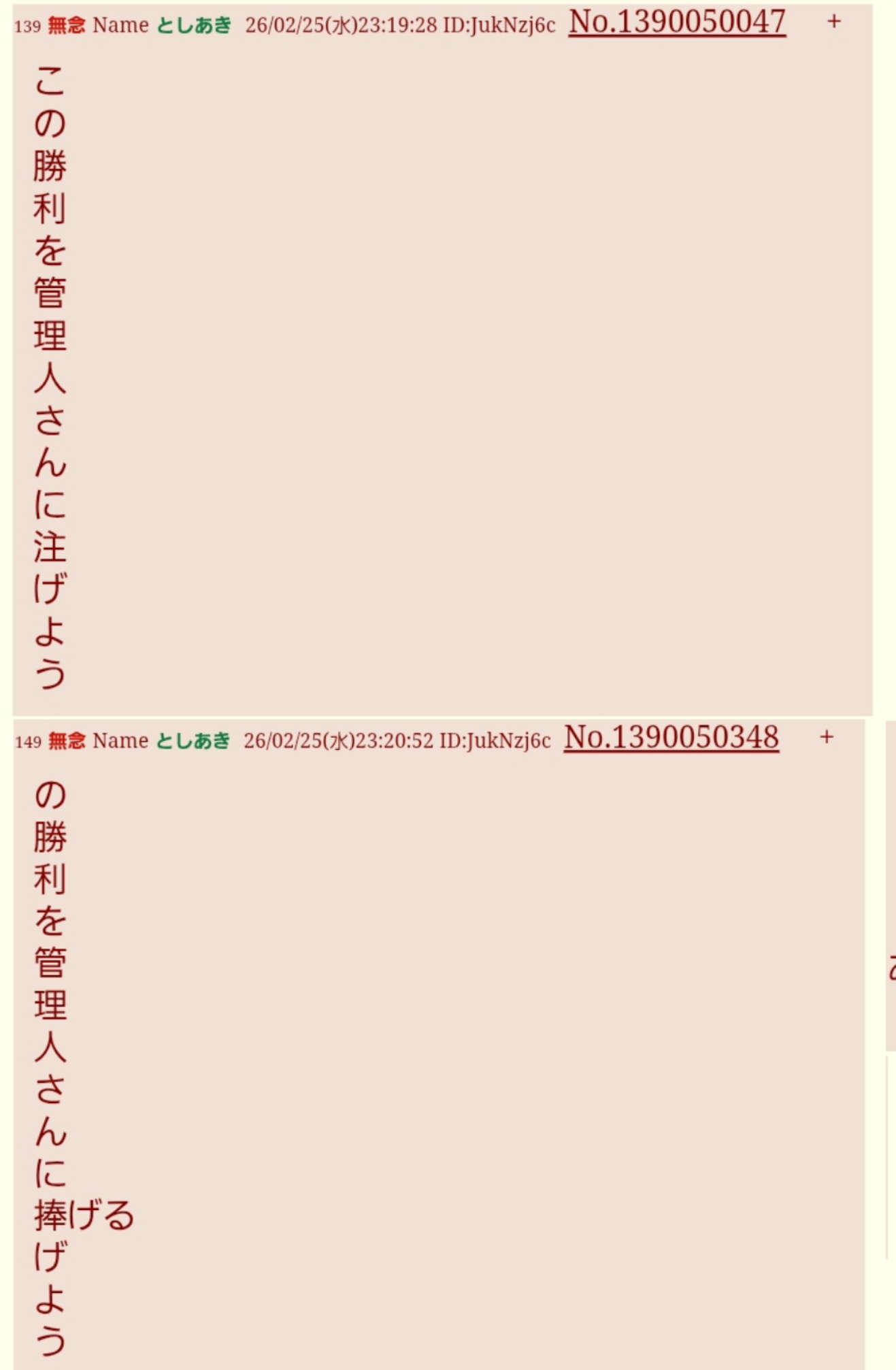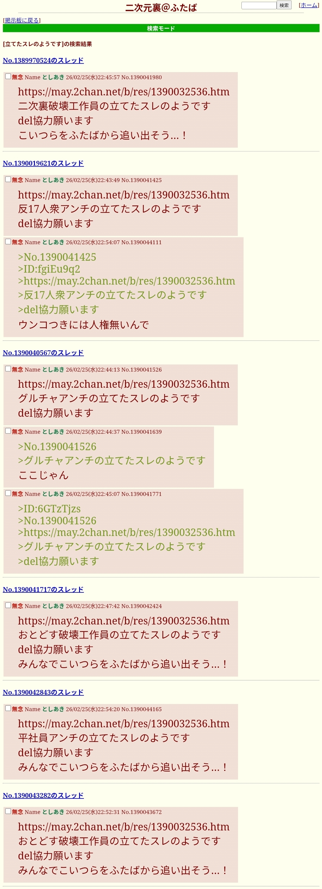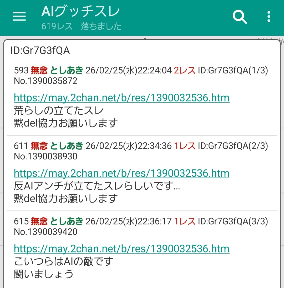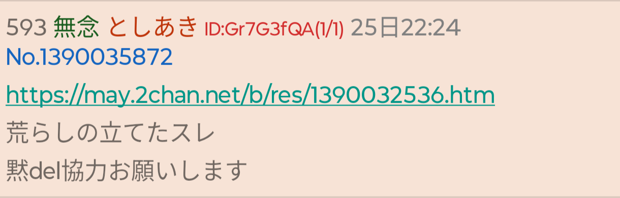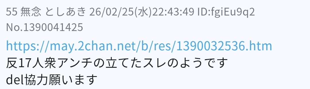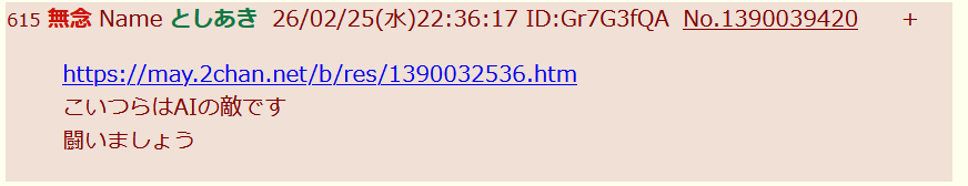 | … | 39無念Nameとしあき26/02/25(水)22:48:32No.1390042642そうだねx6>https://may.2chan.net/b/res/1390040567.htm |