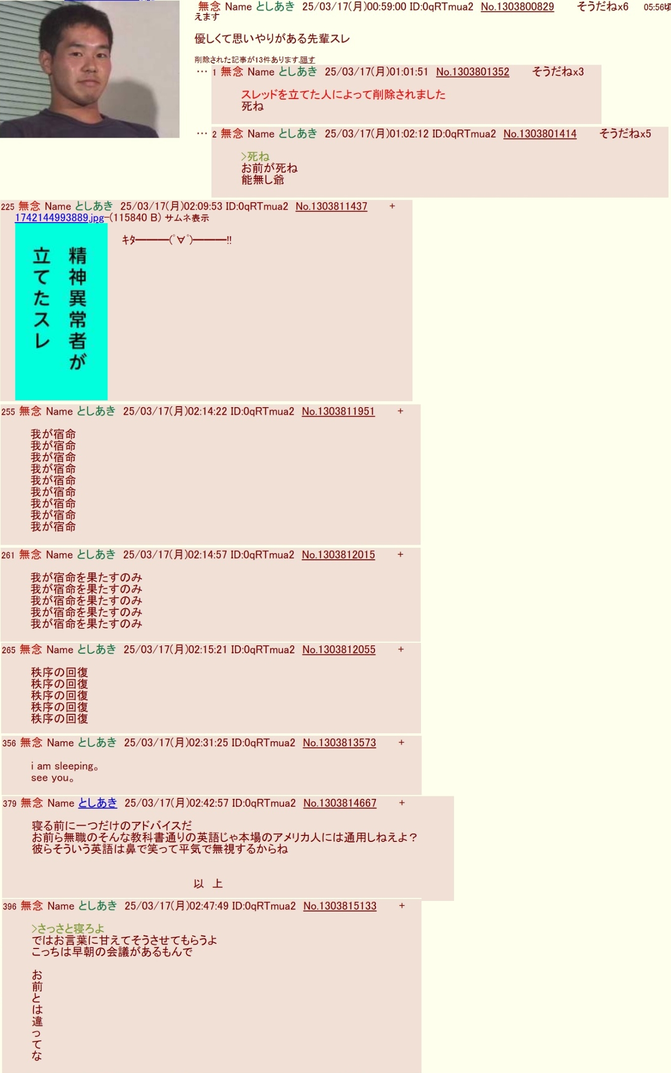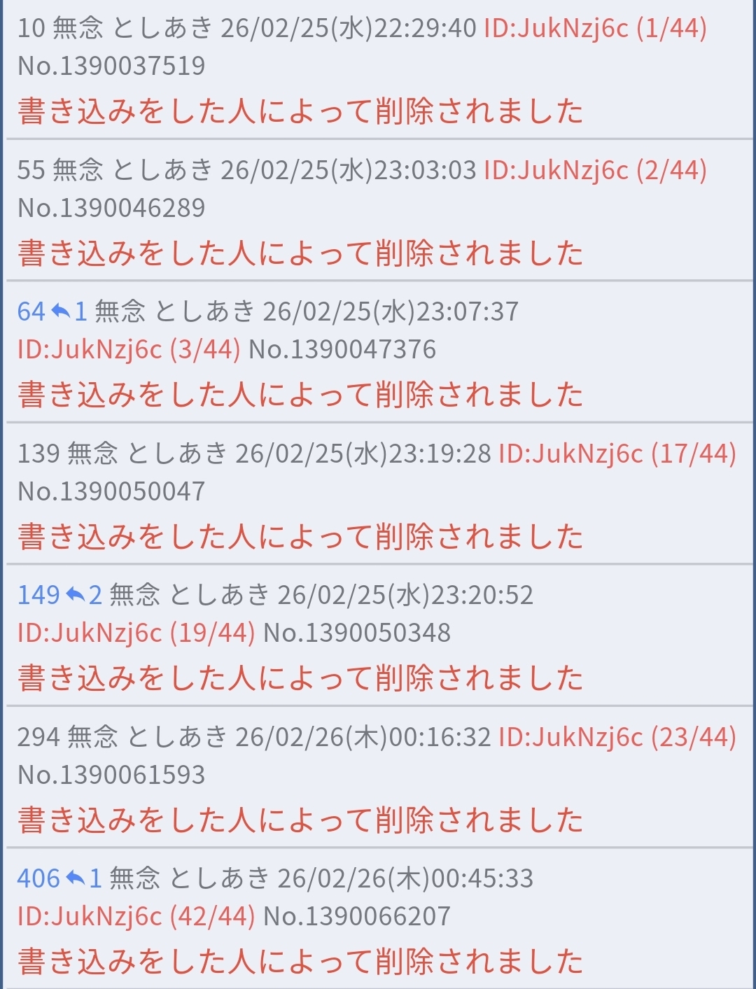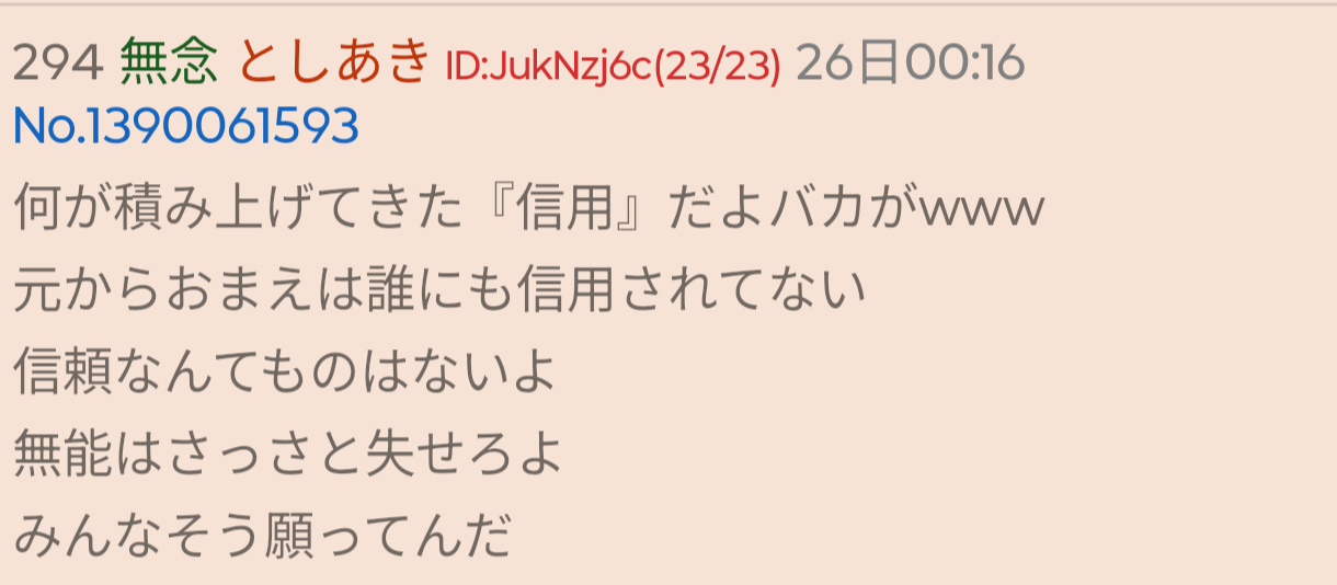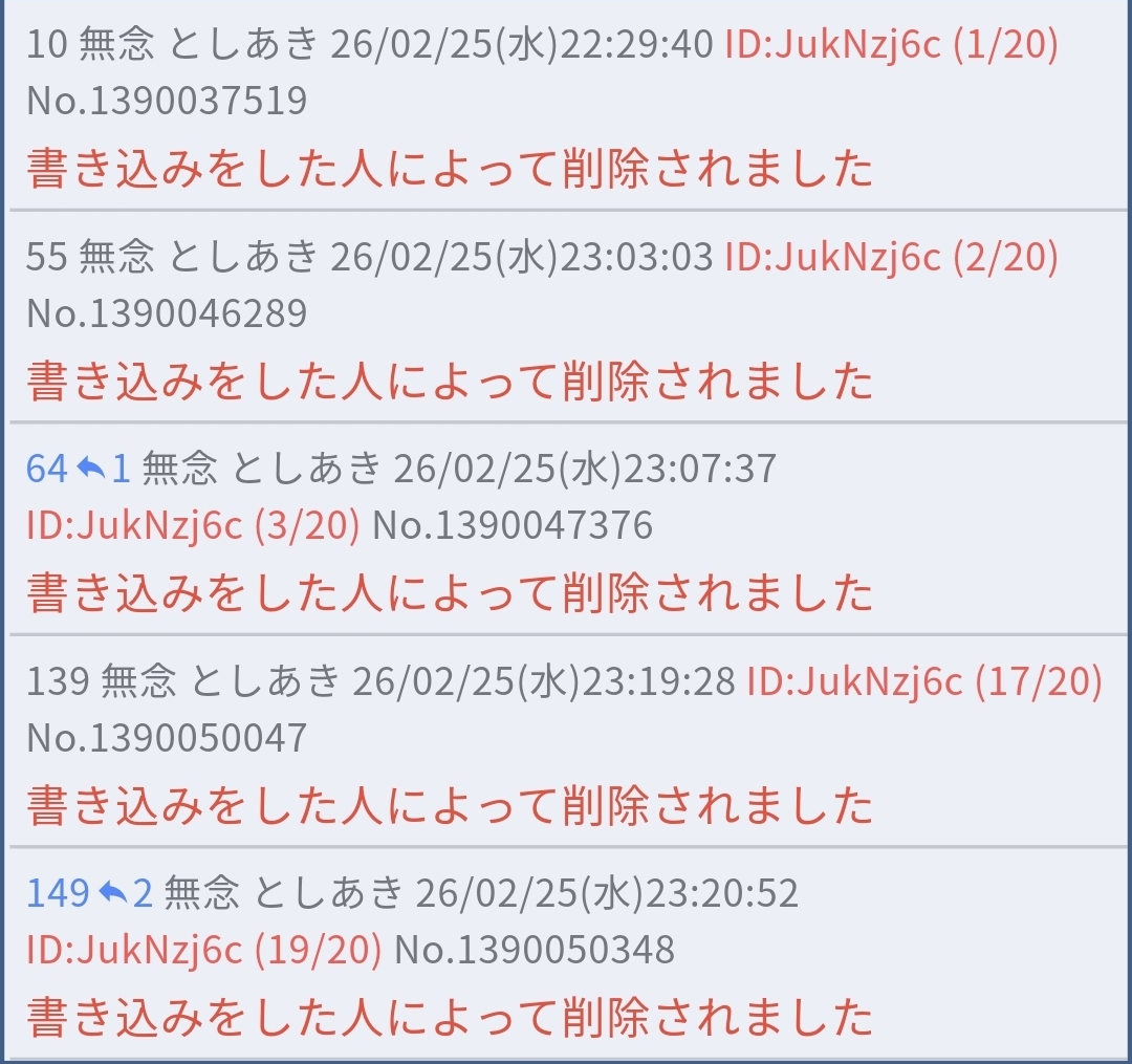 | … | 96無念Nameとしあき26/02/25(水)23:13:23No.1390048685そうだねx8 1772028803729.jpg-(90063 B) もしお前が昨日や一昨日も似たような方法でスレの削除権を潰してたと言うなら |