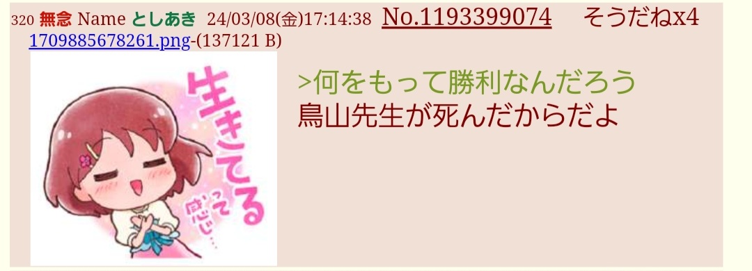| … | 933無念Nameとしあき26/02/26(木)02:48:41No.1390076589そうだねx9>ID:JukNzj6c[90] |