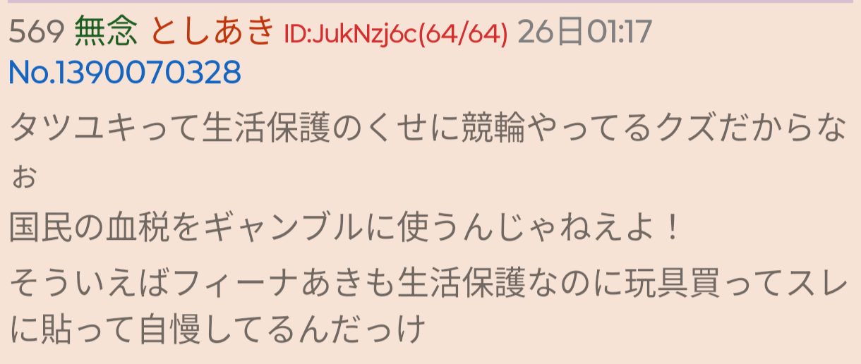 | … | 944無念Nameとしあき26/02/26(木)02:56:51No.1390076988そうだねx6「うんこガノタン^〜ペ虐爺冷えてるか〜?」ってレス見たことないすか? |